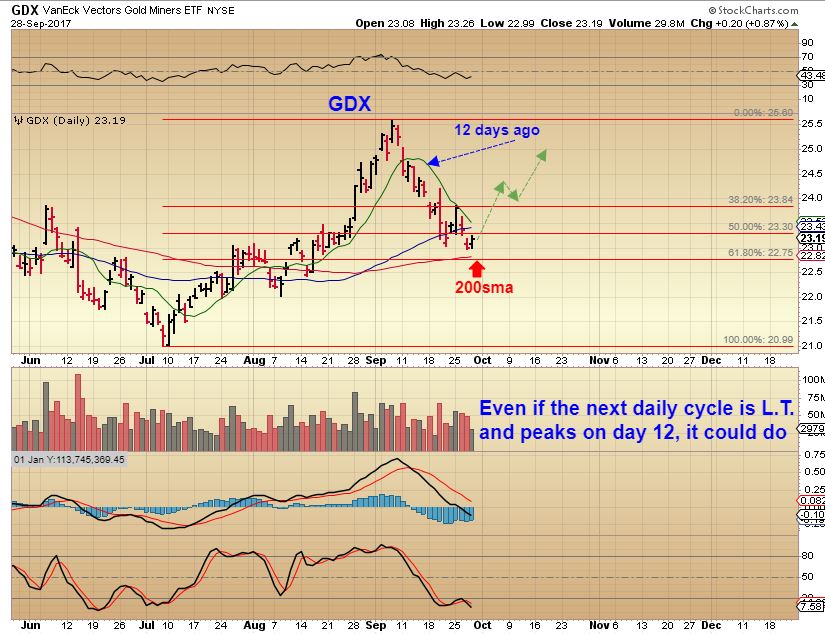 GDX – I can picture it this way. If we get ANOTHER daily cycle after this one, it would extend the ICL out to November or December, and both are normal timing for an ICL from Julys lows.