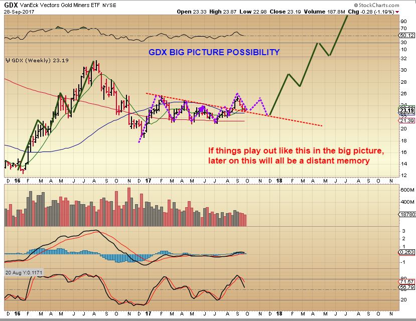 GDX BIGGER PICTURE – LETS GO BACK TO THIS CHART FOR A MOMENT. A LONG CONSOLIDATION WITH DAILY CYCLES EVIDENT.