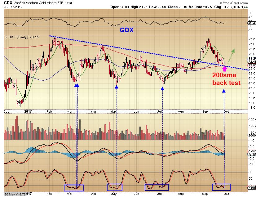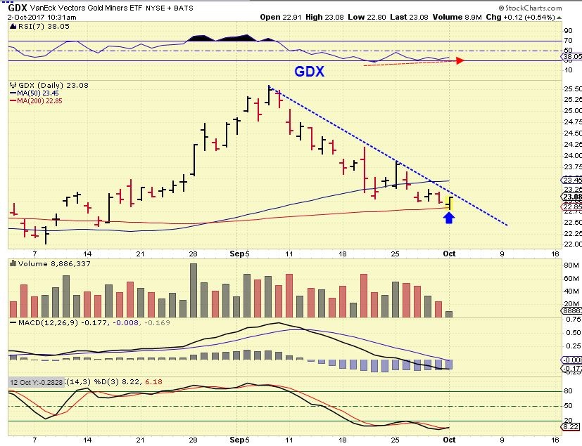 GDX below the 200sma, and GDXJ is sitting right on a trend line from May.