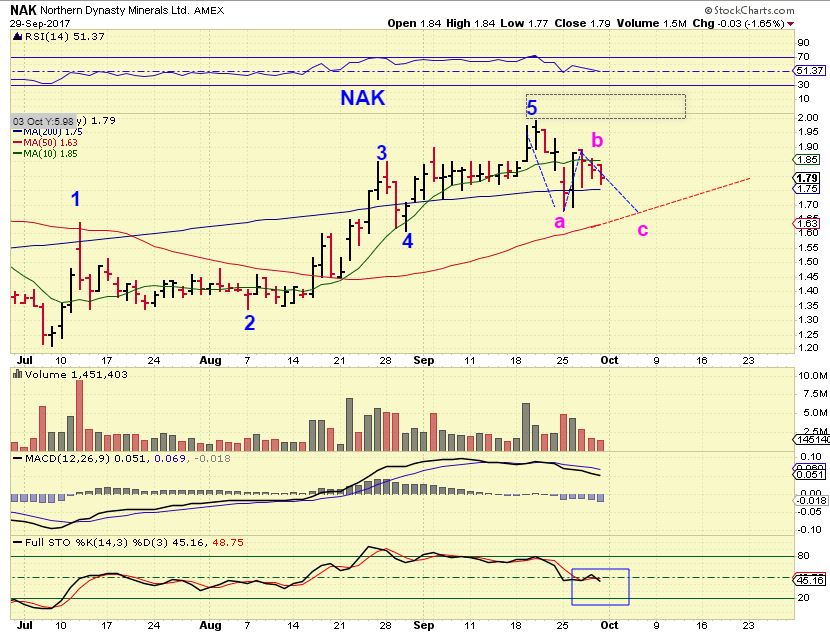NAK– Though there is a possibility that NAK could drop in an a-b-c fashion, there is also a possibility that the shake out at the 50sma is all it drops. Let’s look at the big picture.