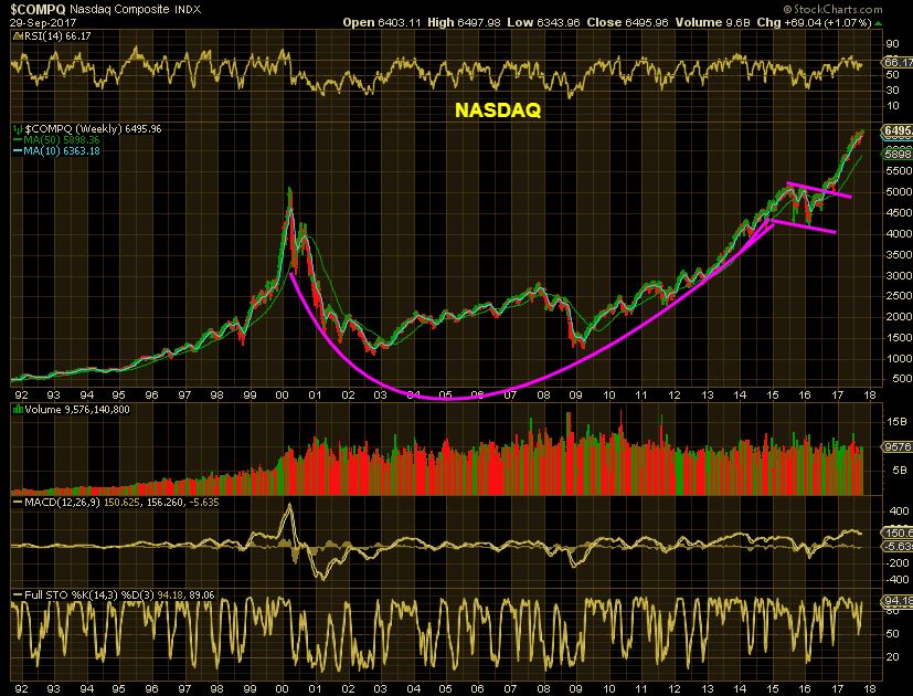 NASDAQ –  For newer readers,  this is one of a few Parabolic Nasdaq charts that I have posted. This one I posted in MAY to show the similarities of this ramp higher.  I was pointing out here the “Rough ride” for 1 year in 1999 that can come before the final ramp up.  Bull markets are not as smooth as they look in hindsight, they can buck and kick.  I wanted us to know that choppiness could also be present.