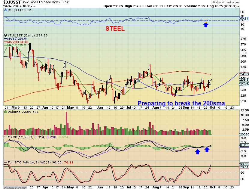 STEEL –  Steels consolidation ( and Copper too) could be ending, so I am again looking at X, CLF, SID, AKS, SCHN, ZEUS, etc – also TGB, HBM, FCX, SCCO, etc.