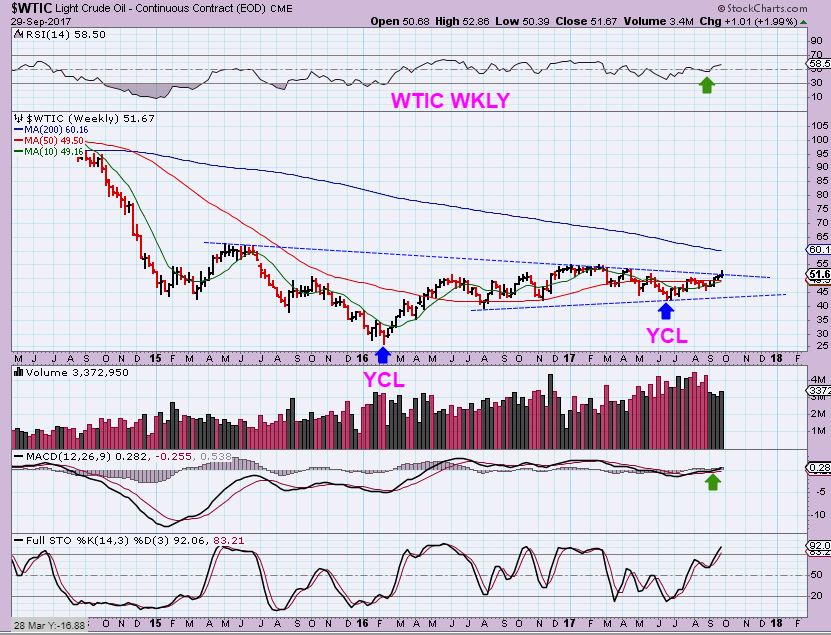 WTIC –  Oil has been bullish after putting in a YCL / ICL in July and I believe it is still a bullish set up.  Oil & Energy stocks have done very well.