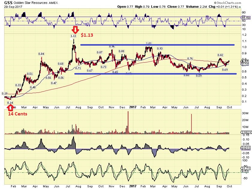 GSS Daily –  That was a huge run from $0.14 cents to $1.13 and the consolidation has been mostly sideways.