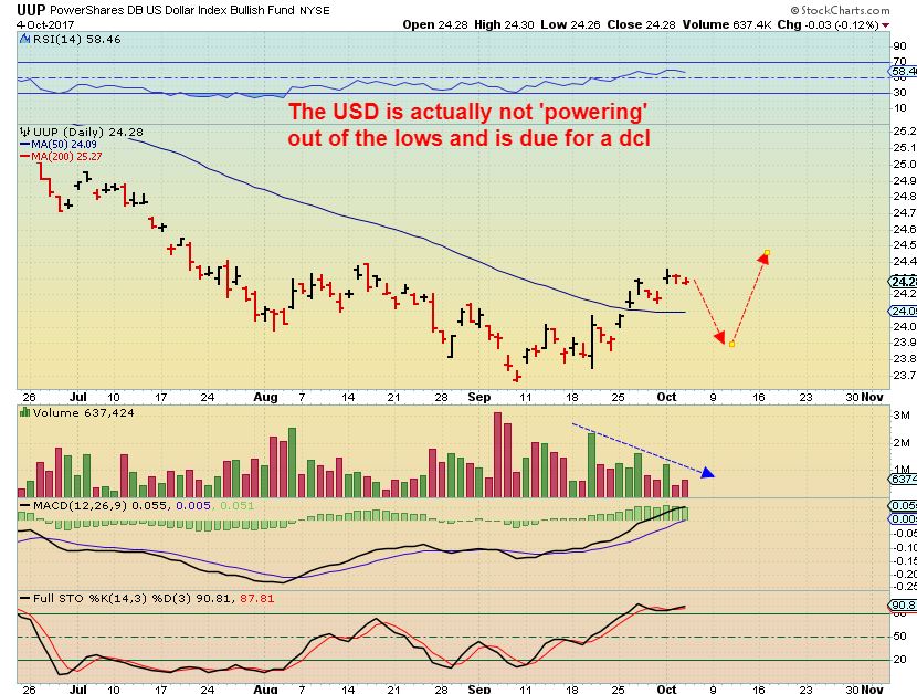 UUP – I’m using the UUP for the volume, but the UUP & the USD have put in a swing high, and the timing is right for a drop into a dcl. A shake out at the 50sma wouldn’t surprise me, but it could just go sideways & down to the 50sma.