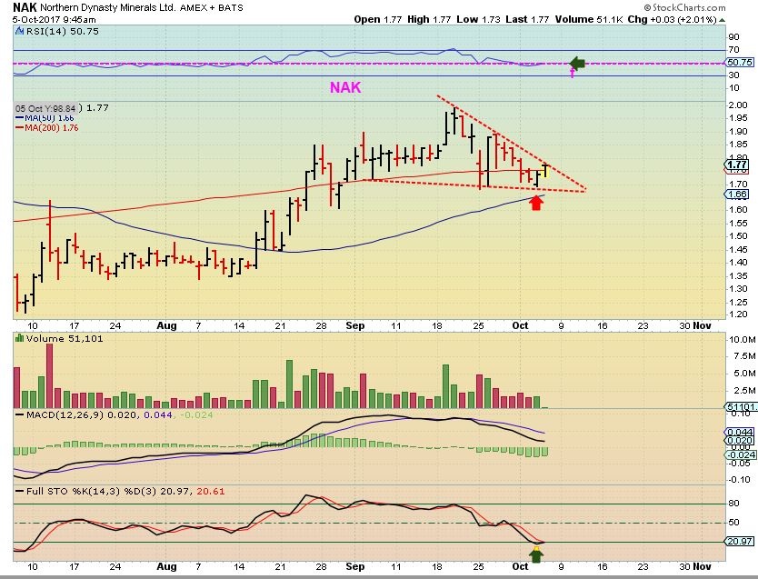 I mentioned NAK yesterday, breaking back above the 200sma would be bullish.