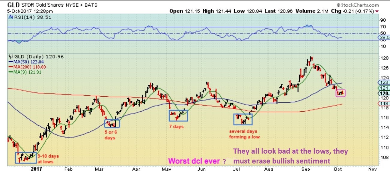 Doesn’t mean that I love the way Gold is floundering around here, with the USD rising an ICL, but just that it looks like many other lows that I have seen. Only time will tell how it plays out by day 8-12
