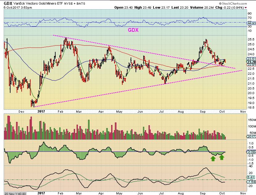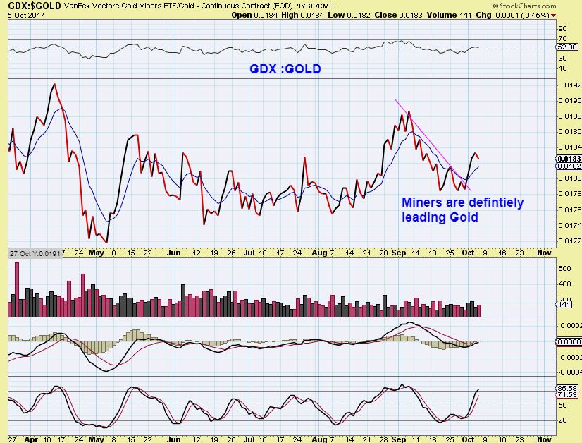GDX : GOLD – Miners definitely leading Gold, so when Gold drops $10 each day, Miners are fine.
