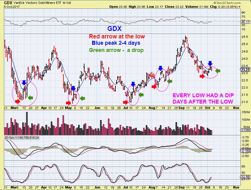 GDX LOWS – Guess what? Every low here moved higher for 2-4 days, and then dipped back down, just like Thursday. Please review this chart. Is this the “Worst DCL ever”.