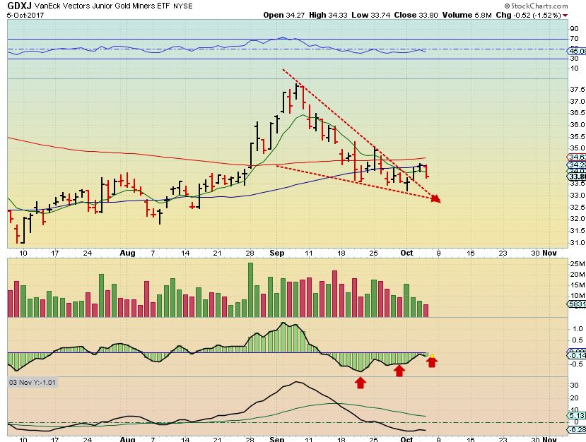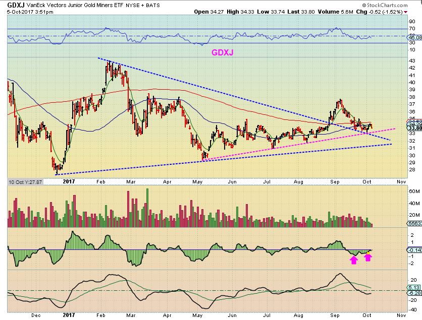 Alex, serious question on cycles similar to Marinho – so for GOLD, today is day 0 (assuming it holds), today would be day 4 for GDXJ and we are looking maybe in the band of day 8-12 potential top for a weak DCL with strong recent $$ action. Does the lack of congruence for $Gold and GDX/J matter? Do we expect them to top first or does the 5 days difference just not really matter – i.e. day 13 GDXJ/Day 8 Gold could be a top. Simple answer only. Thanks!
