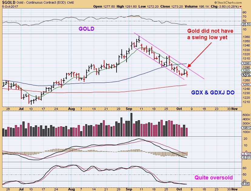 GOLD– So, Did GOLD have a confirmed swing low in place yet? No it did not, it didn’t close above the 10sma & trend line, so a new low in Gold is not damaging a dcl, it is extending it. However, miners?…