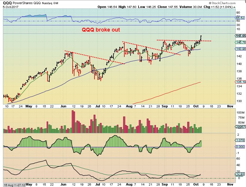 Today is Friday, the last trading day of the week, and I have quite a few thoughts rolling around my head. One of the biggest is the employment report. Why? The Markets are on fire, The NASDAQ just broke out , following the SPX, DJIA, and RUT – which have been on fire. What if the Jobs report disappoints? What if the hurricane that hit Texas and then another one that hit Florida disrupts the employment numbers and caused more than expected to report that they are not working?