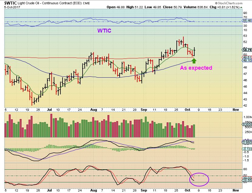 OILs chart from yesterdays report – I called for a bounce, because OIL / Energy stocks were not selling off with Oil. We would then monitor that move & see how it bounces from here…