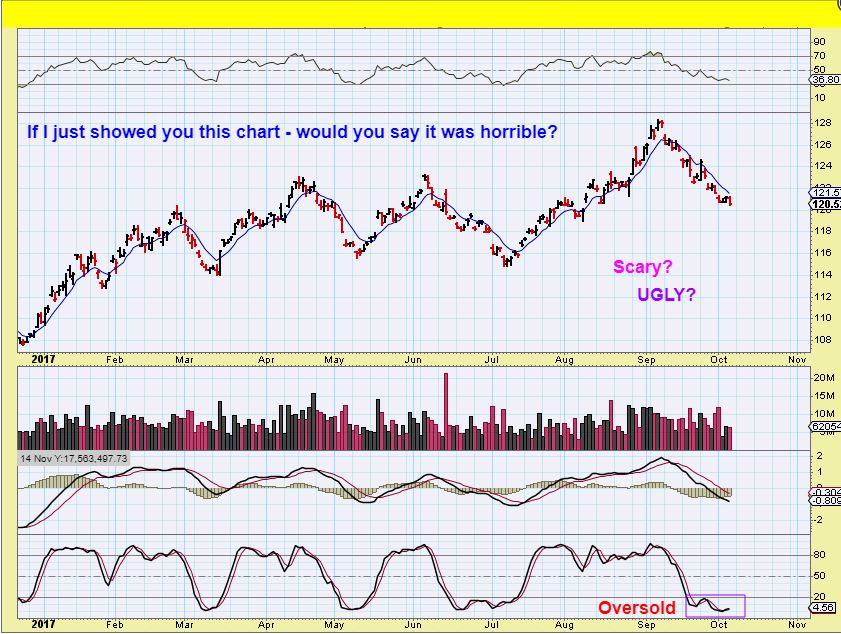 XXX – FOR THE SAKE OF PERSPECTIVE , If I just showed you this chart and you didn’t know what it was a chart of , would you say it is Bullish or Bearish? Is it Scary? Ugly? Or would you think, “That’s a nice move that I missed, I should try to buy that dip”. Perspective keeps you centered, balanced, and unemotional and unbiased. Set stops and let the markets do what they will.