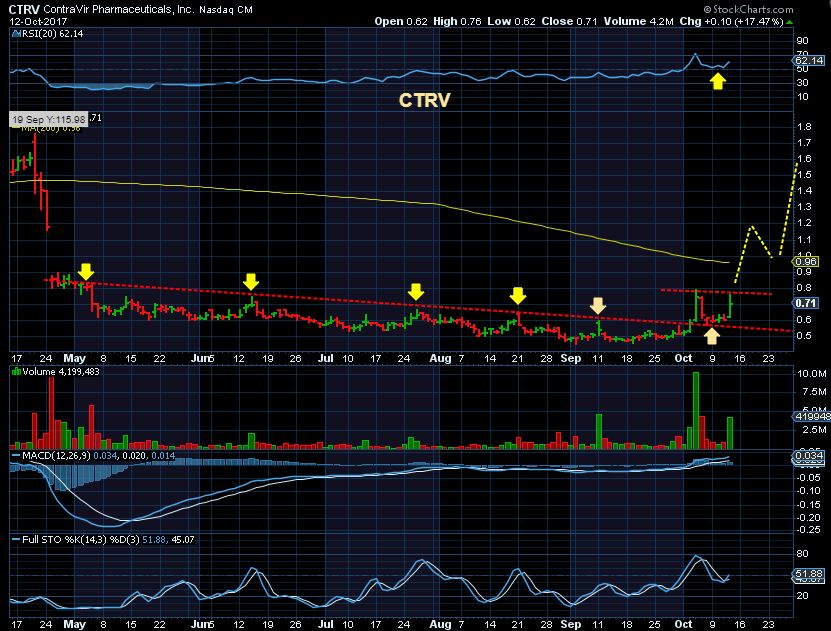 ATNM – It is possible that you’d see a back test of the 50sma, but that may not happen until after a tag of the 200sma. This is just an idea of how it could move going forward.