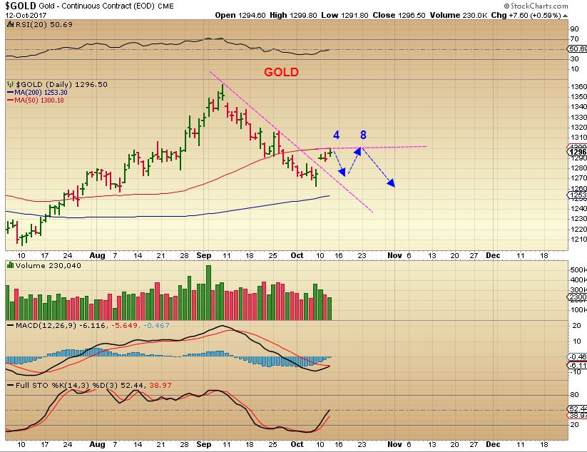 GOLD –  Gold CAN go higher, above 1300.  This chart is not a price prediction, it’s just drawn this way as a reminder of our expectations of weakness.  I wanted to point out that GOLD may not go much higher for 8-12 days, it could just bounce around.  I am expecting the USD to put in a solid 2nd daily cycle , and this should push Gold down into a dcl.