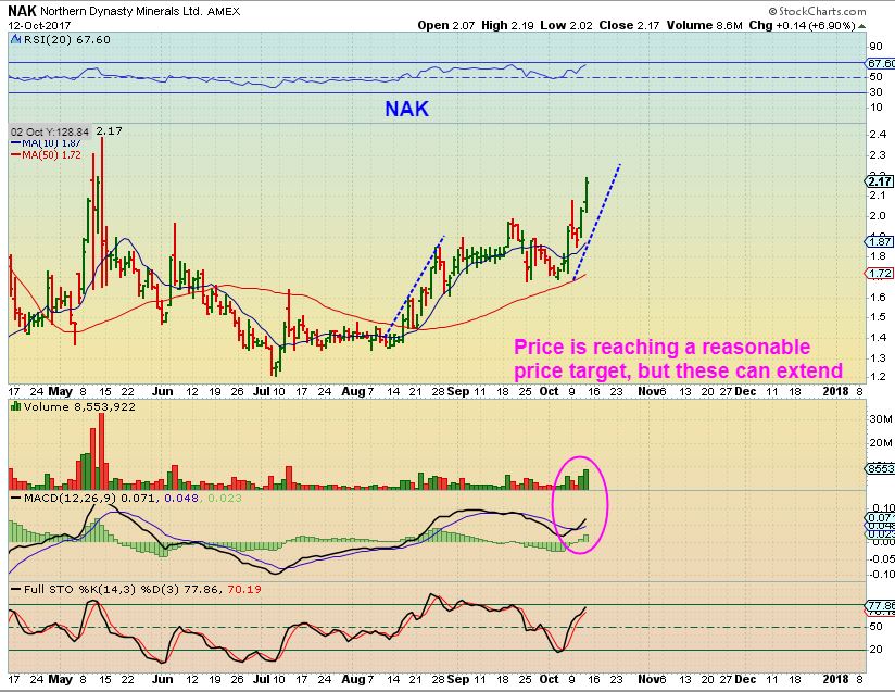 NAK – Nak added on another 7% Thursday, and is reaching a ‘conservative price projection target’.  It could tag $2.25 to $2.40 actually, but …