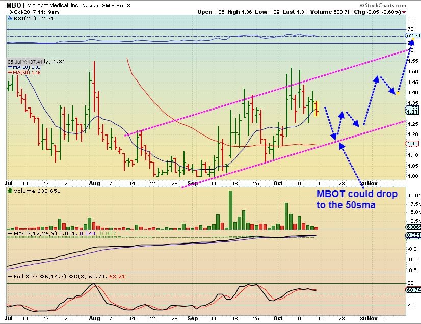 MBOT – I am still in MBOT for example,  and that has positive activity so far, but not always an easy ride.  Some may wait until it breaks out higher and starts a stair step pattern.  Day to day can be tough with this one, since it moves in big daily swings or it can be boring day after day.  The upside potential far outweighs the boring action to me. I’m trying to invest in this with patience.