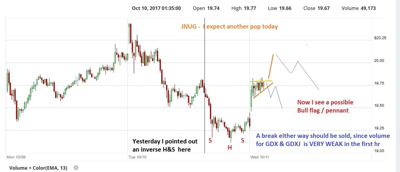Are you leveraged?   GDX only dropped 17 cents & GDXJ dropped 1.29%  (  yes, I know,  Gold was higher so it seemed uncomfortable), but with just a 17 cent drop, I again see concern, frustration, etc.  This may not be a perfect trade set up for everyone,  especially if you are leveraged, holding NUGT OR JNUG, You might need to ask yourself  what I ask myself –