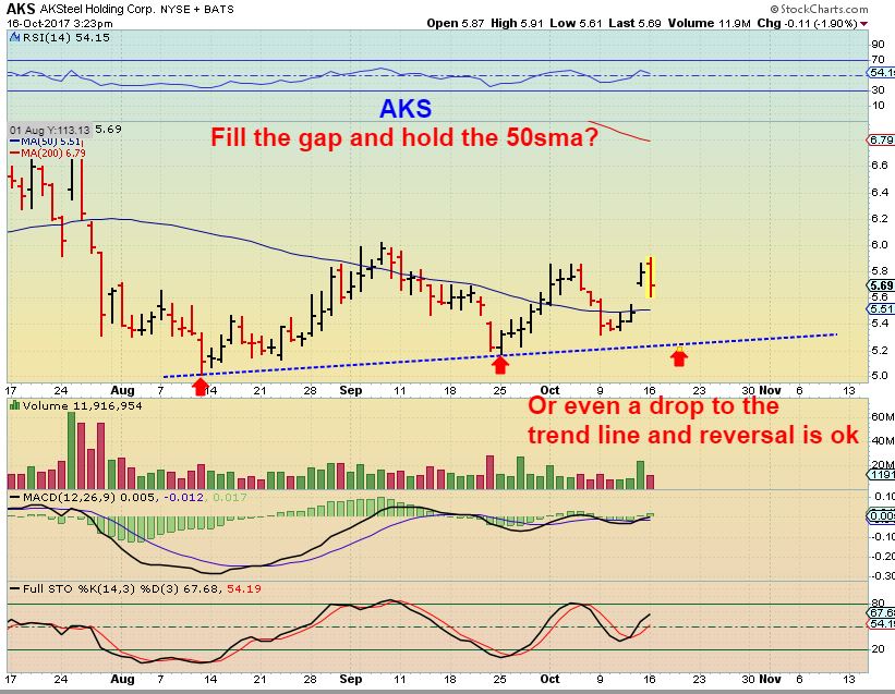 AKS MONDAY – Gap fill coming up? Buy the reversal if so.