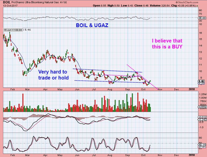 BOIL FROM THE WEEKEND REPORT – I mentioned the high short positions in NATGAS, and that this could drop down to back test the Magenta trend line in a 1-2-3-4-5 type move. It would be a buy opportunity if it showed signs of reversal or support, etc.