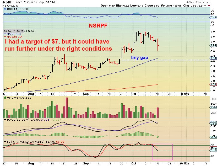 NSRPF – My target was $7 for NSRPF, then a pullback could offer a better price. Are there some Miners that ran away and maybe you were lamenting that you didn’t take a position? They probably will be offering ‘sale ‘ prices in the future. KL has already dropped form $15 to $13, and NSRPF dropped from $7 to a low of $5.13 already. It could be at $4 in the near future.