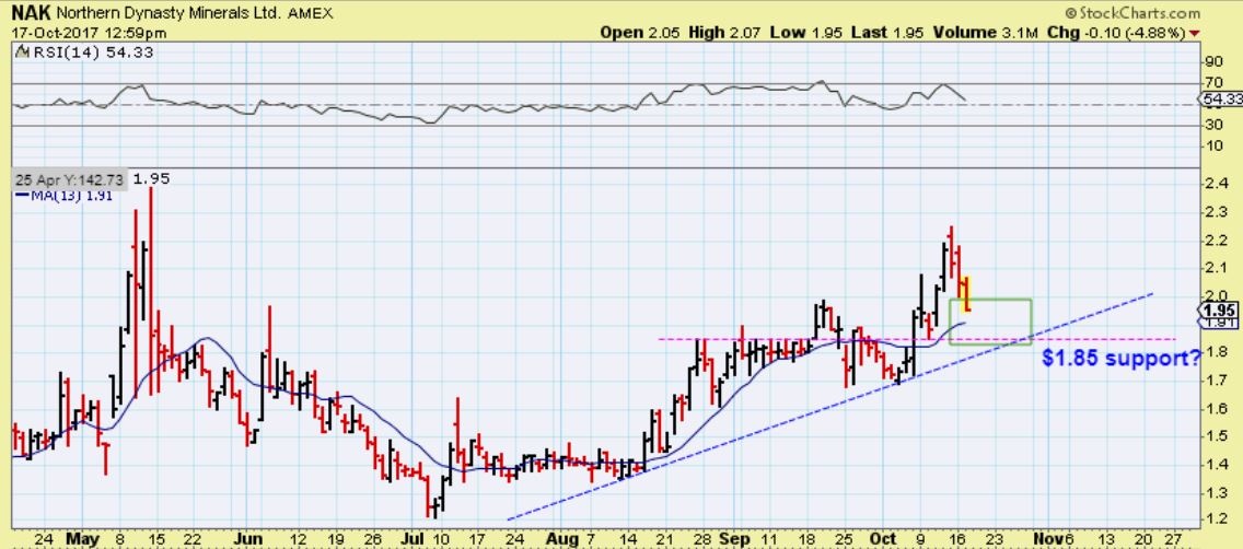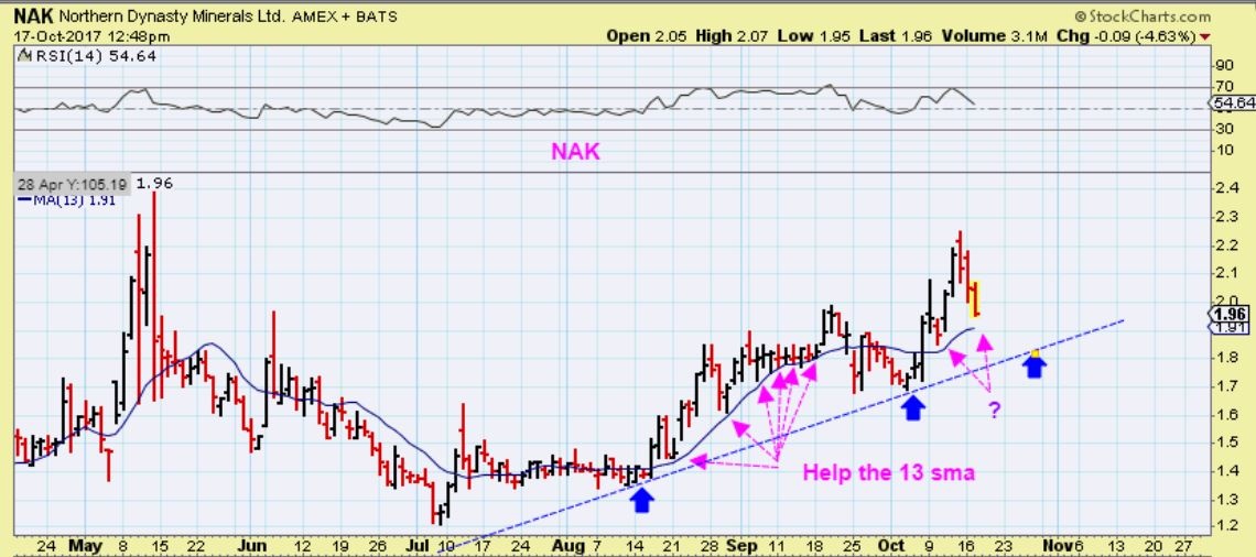 NAK WEEKLY – This was taken Friday when it was $2.12 ( before Mondays drop), but it is to show the big picture and support as it trends higher. It closed at $2.05 on Monday.