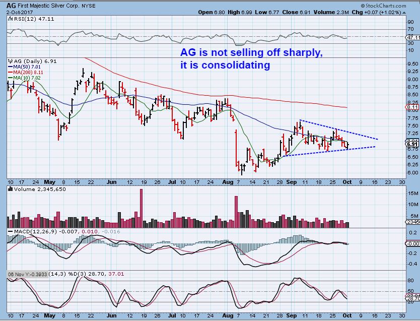 AG – Silver is selling off and AG is forming a triangle formation.