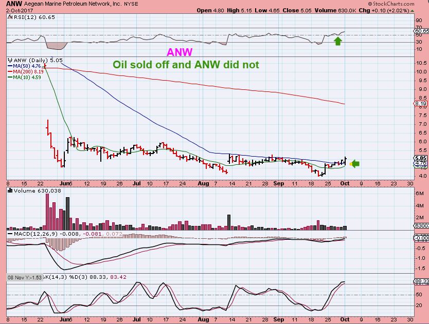 ANW – This is one that was in the weekend report, and it didnt sell off when Oil did.