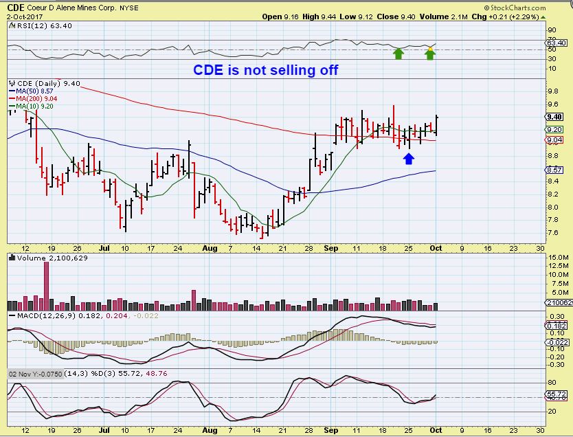 Hey Dave – I do think that we must be close, many of the miners do seem to be resisting the selling , and that is with Gold down $10 Monday and down last week. Some Miners like CDE have simply gone sideways on the 200sma, and that is usually a sign of strength or accumulation, so the signs are there.