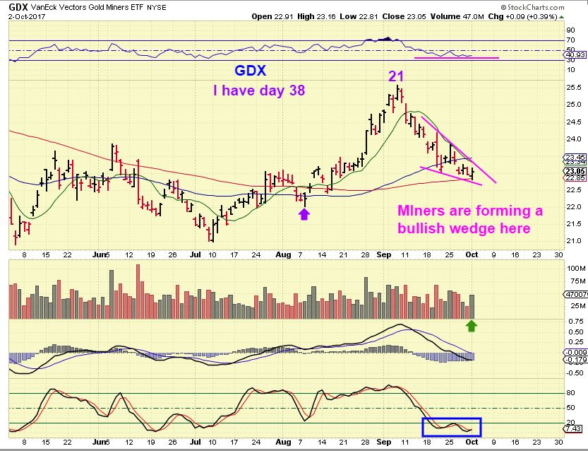 LET’s LOOK AT MINERS ACTING BULLISHLY, WHILE GOLD IS SELLING OF $10 / DAY. THIS COULD BE SIGNALING THAT THE DCL IS NEAR.