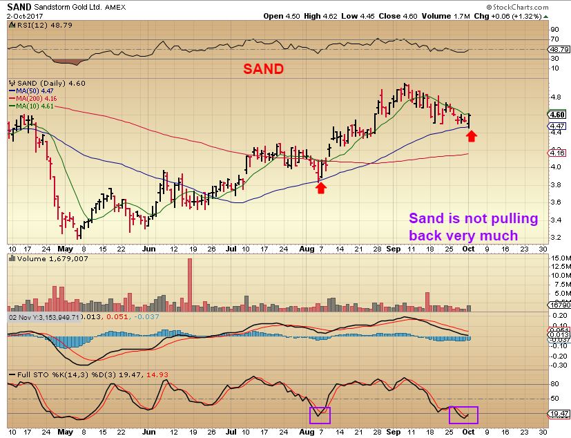 SAND – Sand in trending higher and found support at the 50sma Monday.