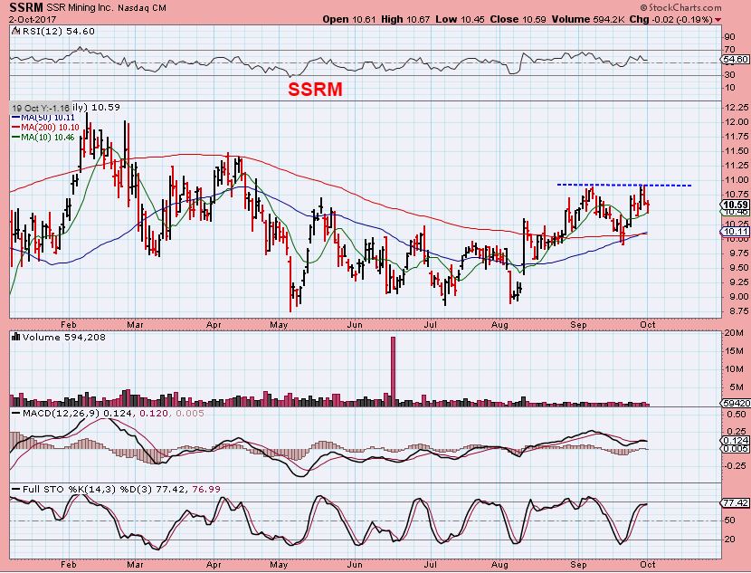 SSRM- As pointed out last week, SSRM is still closer to recent highs, not making new lows.