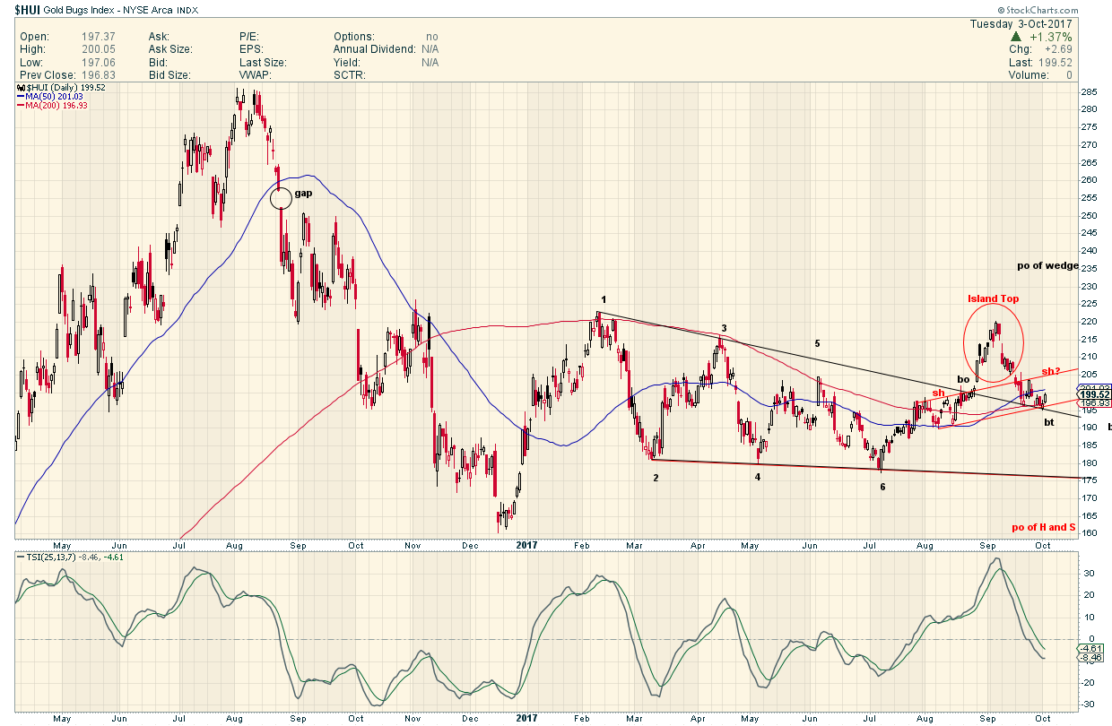 GDX – This looks like a bullish wedge, and it is day 38. A quick shake out could happen at the 200sma, but Miners closed a bit higher with GOLD down $8 or $9, that is a bit bullish. Some individual Miners have a short term bullish look to them…