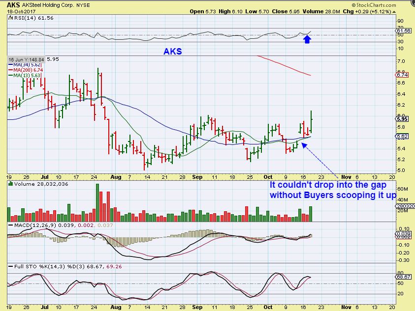 This chart of AKS is bullish looking and it looks like buyers are scooping these up as they enter the gap. That seems rather bullish.