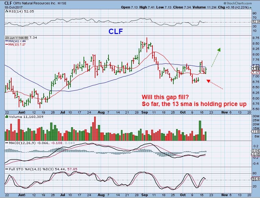 I think that we’ve had enough trade ideas in the last few reports to keep an eye on, so I am only going to add a few thoughts below. The Steel plays like AKS, CLF, X, VALE, etc had gaps and I pointed out that they may fill the gaps before going higher. It is starting to look like the gaps may not fill.
