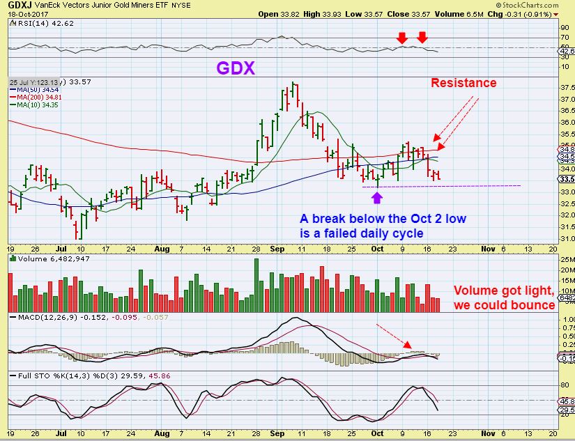 Alex: If GDX were to close right now (or assume it closes above yesterday’s high), would you think we are looking at a half cycle low, or a setup for a potential failed swing low that will continue dropping toward a LT DCL? I know you are expecting a LT daily cycle here, so I doubt you will say HCL (which could then flip us to a RT cycle), but I’d love to hear your thoughts.