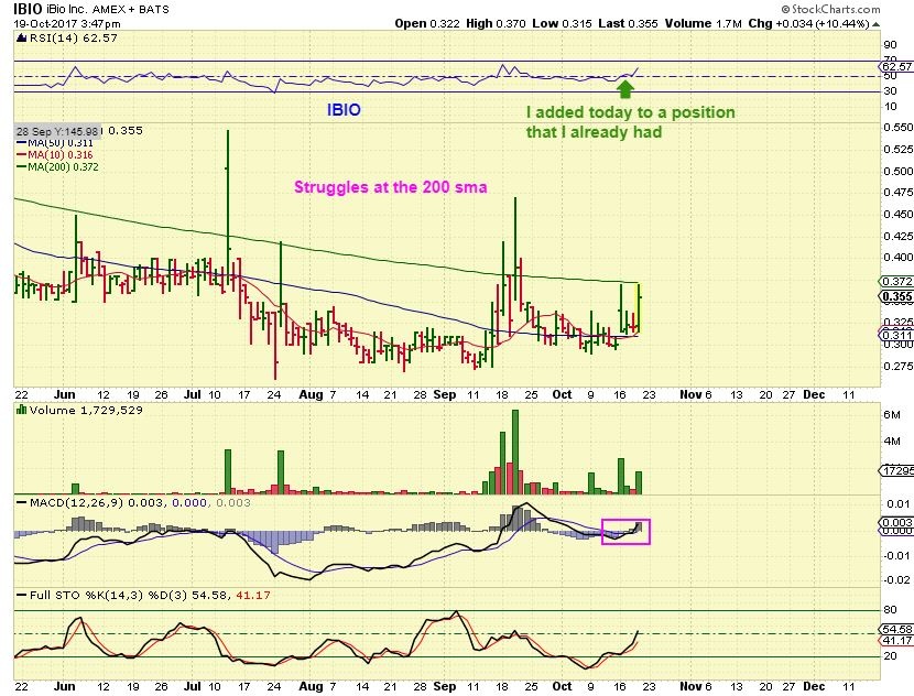 IBIO is also acting correctly, I already owned that one at the 50sma, but the 200sma keeps holding it down.