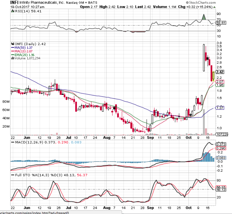 INFI seems to be holding the gap. Still sitting on half of shares bought much lower with thoughts of adding with a stop below the 20 day ma https://uploads.disquscdn.com/images/e659dc464f0f5617ae79cfa69f60c2e6df84959ffc5f3a8ee84cb2db163e6ed1.png