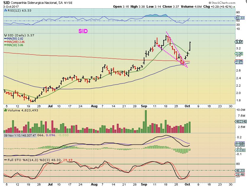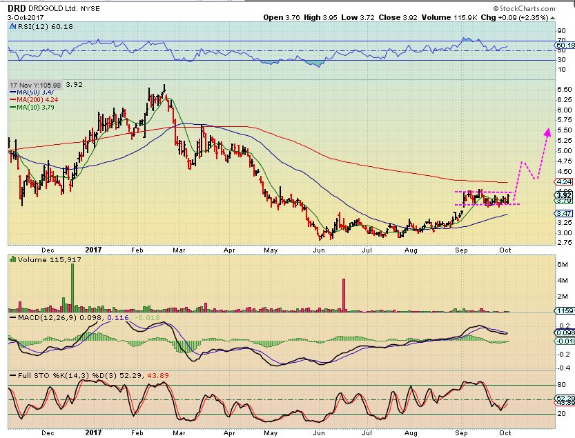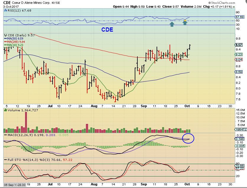 CDE – Even on September 28 I pointed out CDE as a BUY candidate, refusing to sell off and consolidating above the 200sma.