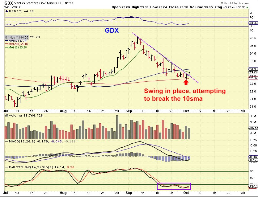 Golds rise this morning has put a swing low in place, unconfirmed, but this should push GDX & GDXJ to confirm theirs 🙂