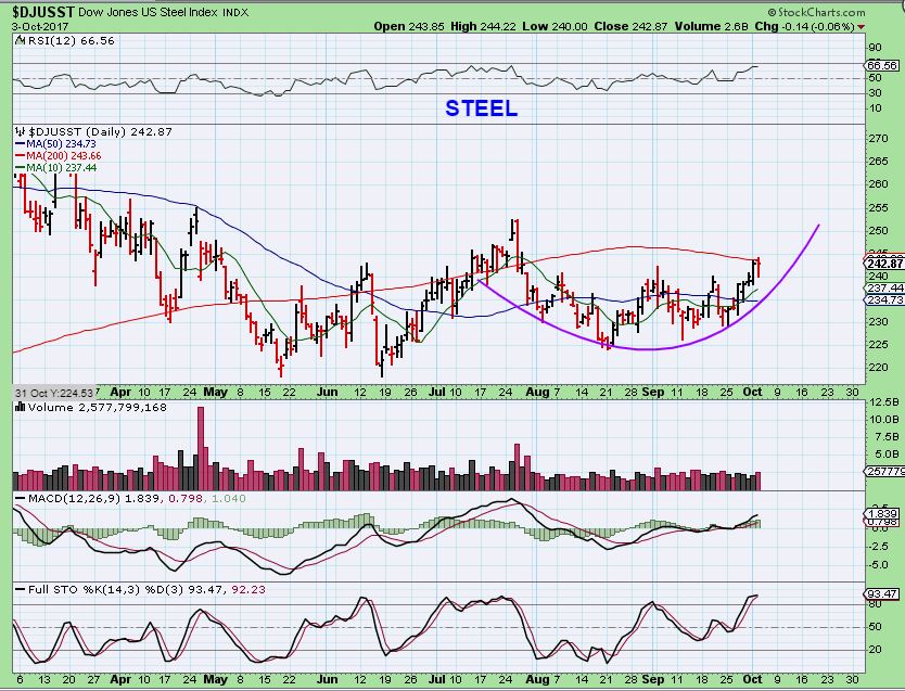 STEEL – Steel is now pushing on that 200sma, and steel stocks do seem to be gaining traction.