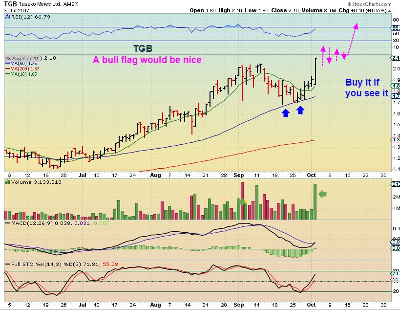 Tuesday TGB – That was a nice 10% pop Tuesday. Hope for a bull flag as drawn here, and you’ll get another buy or place to add.