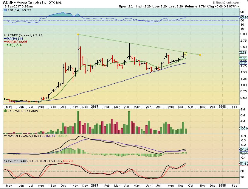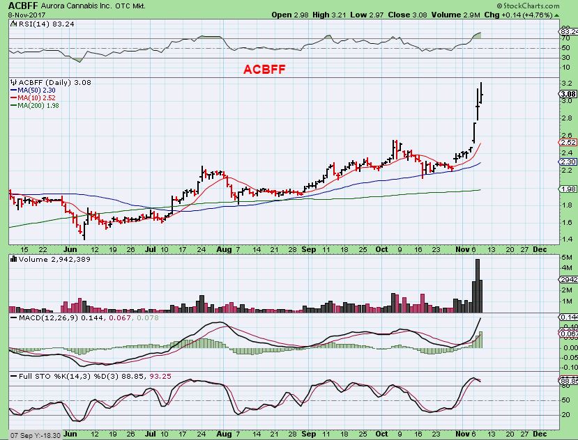 ACBFF breaking out last week- AND IT HIT $4.25 today! DO NOT SELL THE BREAK OUT ON THESE ( And OGRMF & APHQF are breaking out now , if you own them).