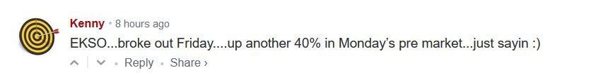 Hey Deshy – I’m not sure it was me- KENNY ( with the bulls-eye avatar) was mentioning EKSO lately. I cant remember if I mentioned it in the past, but yes, please do stay with us 🙂
