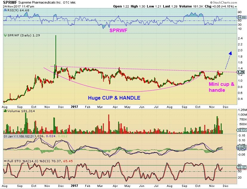 THIS IS SPRWF – A Canadian Med Marijuana stock that I own, and might add to if it breaks out. It looks very good, though it has been moving slowly since I bought it.