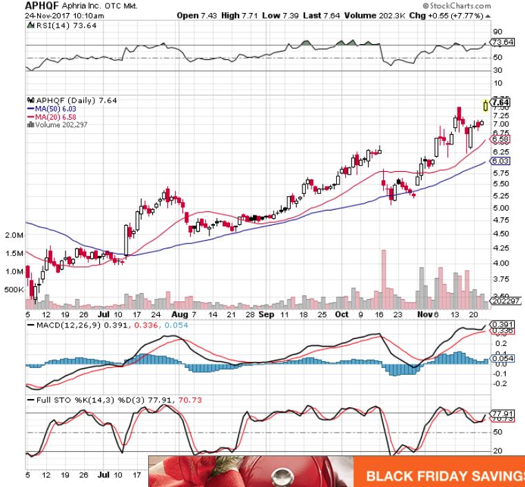 Aphria (APHQF) is joining the fun….breathtaking moves on Black Friday! https://uploads.disquscdn.com/images/51dc094945e2ff98e591bb1e2adbfc97665a6144dead1690b5d9655a393a2832.png