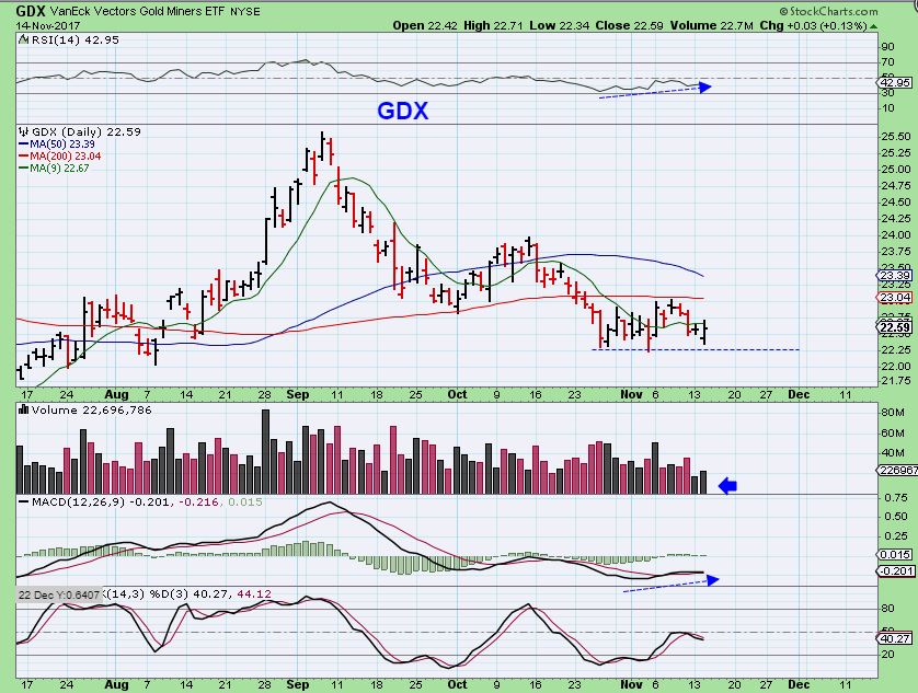 GOLD #1 – Interestingly, Gold looks a bit bullish too, but Miners do not , as you will see. Gold is not breaking recent lows and it’s indicators are rising.