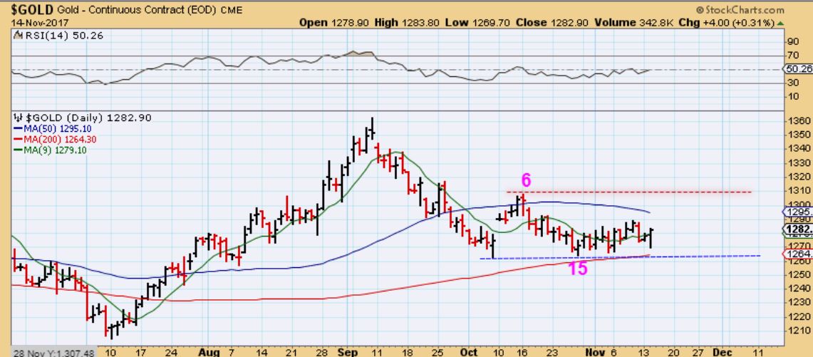 GOLD #2 – The parameters to watch if gold moves higher.  A break above  day 6 1308.40  is NOT expected and if we see that- we will have to accept a more bullish idea, but I do NOT expect that. Miners are still weak.