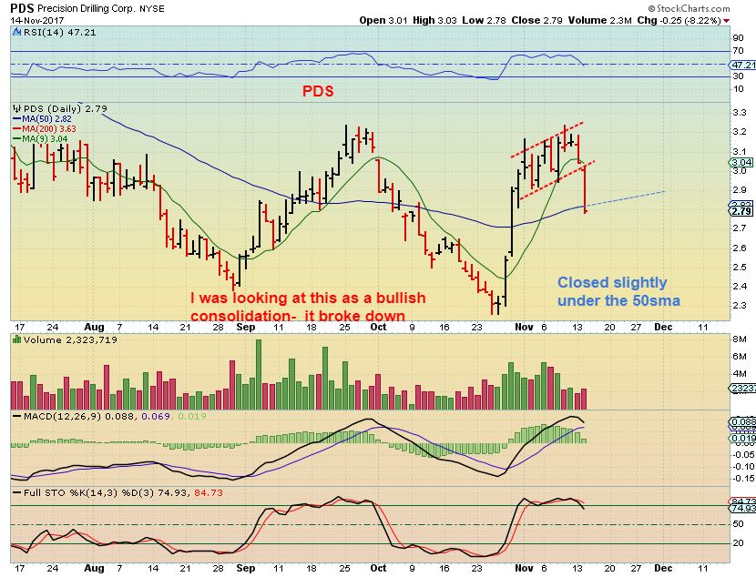 I sold PDS when it closed below the 50 sma. It dropped this morning & is recovering….I am thinking that we may ( MAYBE) get shake outs here in Energy- many are reversing now
